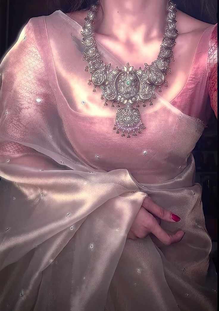One woman was working in kitchen. It was early in the morning. Sweat rolled down from her forehead. She look at biryani